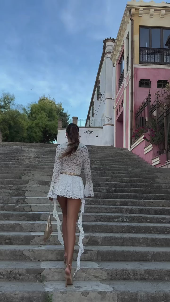 L’ abito Dizy in pizzo corto è un capo elegante e romantico, perfetto per occasioni speciali o per un look sofisticato.